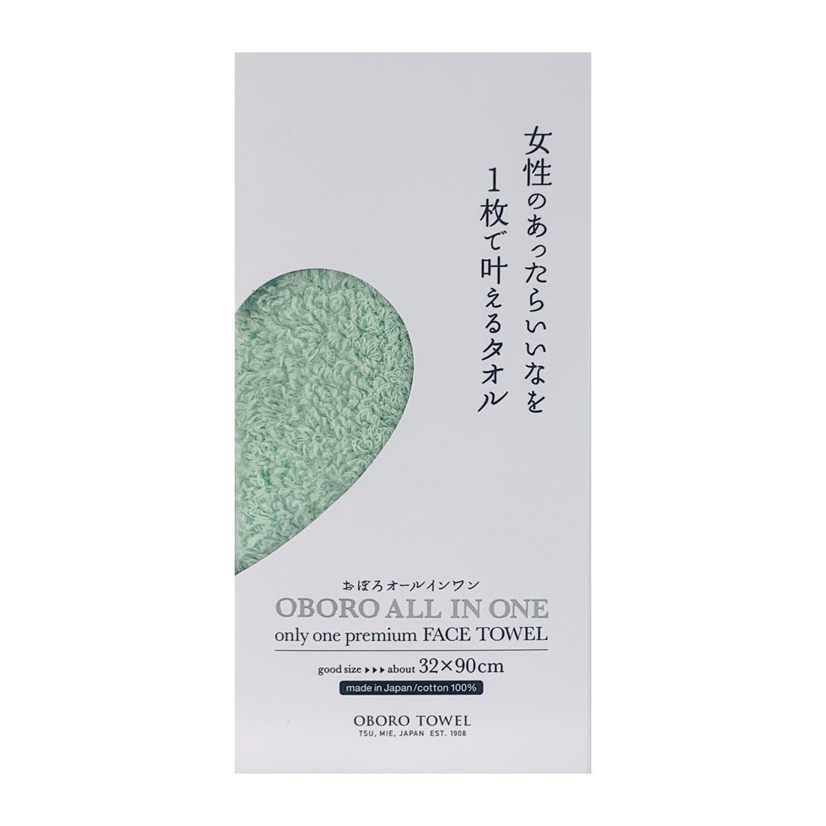 商品名:おぼろオールインワン フェイスタオル グリーン(32×90cm)《日本アトピー協会推薦品》